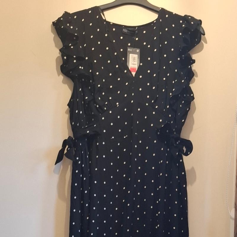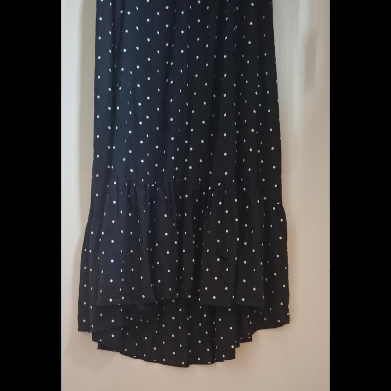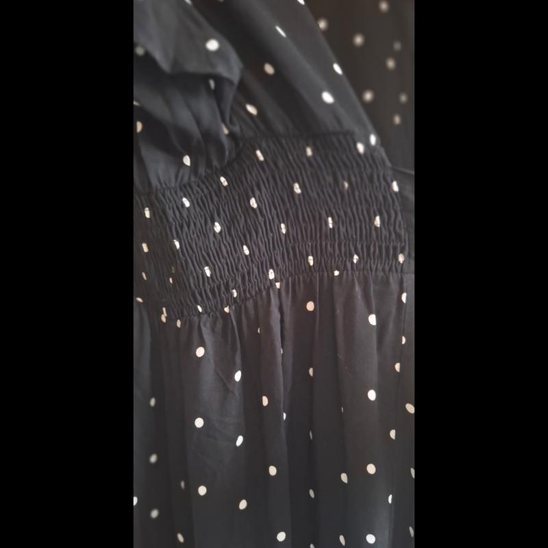легкое платье без рукавов с воланами вокруг рук приталенное, стягивавшийся по талии с обеих сторон на широкой резинке 7.5 см высота и 25 см длина сверху декорируйсь завязками по низу платья 27см волан спереди платье короче на 23см 18 размер