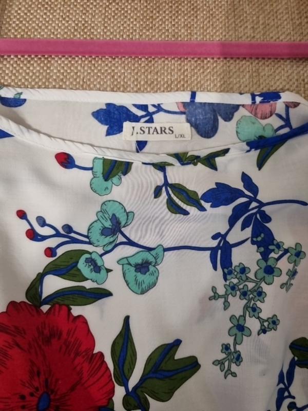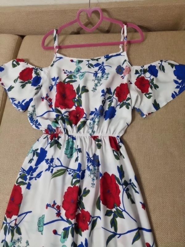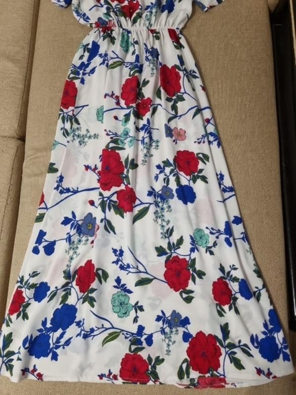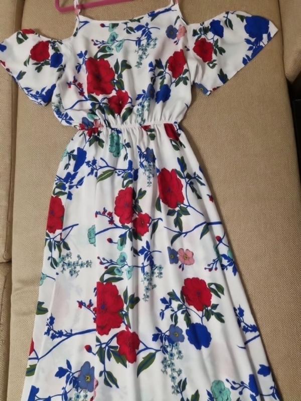 Сарафан в яркий цветочный принт. Плечи открытые, брители регулируются Замеры длина общая от плеча спереди 142, длина юбки 98, пот 27, тянется до 50, пог 51, Бирка со складом ткани срезана, но по чувству это вискоза Размер L/XL
