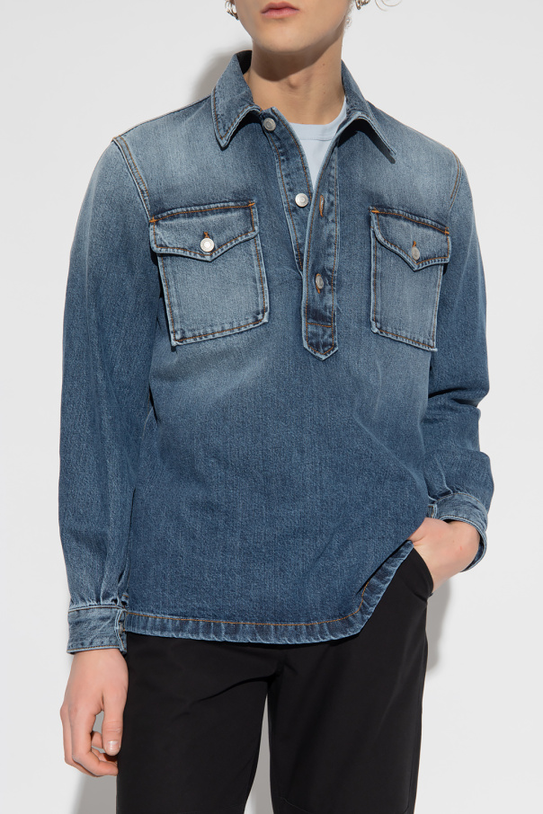 Blue denim shirt from Alexander McQueen. Made of cotton, this style features button fastenings, long sleeves and two flapped pockets.