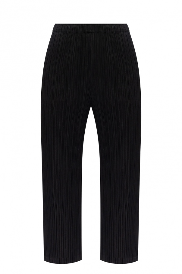 Black pleated trousers from Issey Miyake Pleats Please. This straight leg design is complete with an elastic waistband.