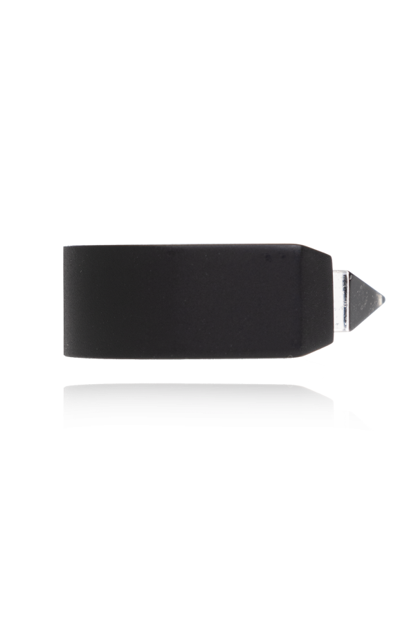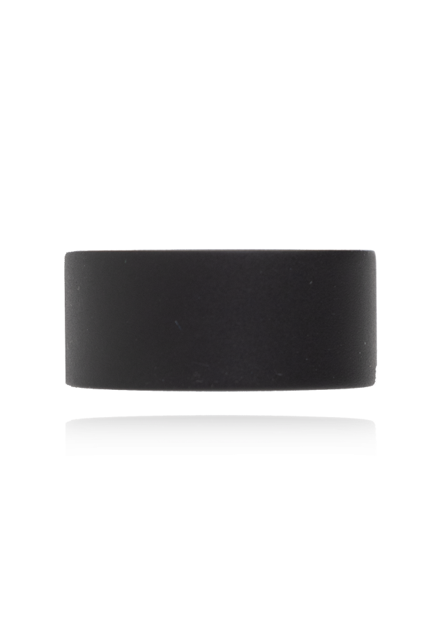 Black ring from Rick Owens. Made of brass, this item is engraved with a logo pattern.