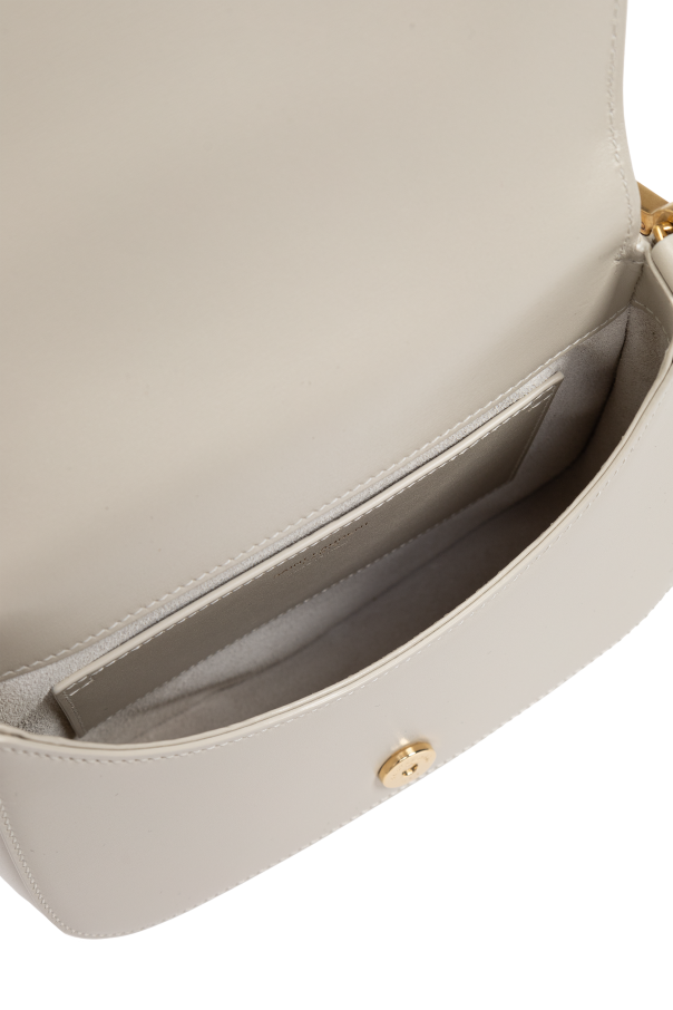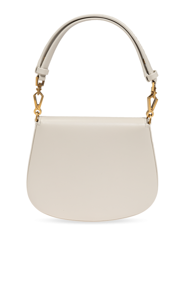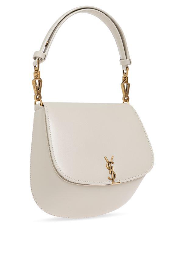 Introducing the ‘Voltaire’ Handbag by the illustrious Saint Laurent, a paragon of sophistication and functionality. This handbag boasts an elegant, rounded silhouette with a flap closure, meticulously crafted from sumptuous cream calf leather, exuding timeless luxury. Adorning the front flap is the iconic gold designer logo, a testament to its prestigious lineage. The bag features a sturdy mid-length handle, embellished with opulent gold accents, complemented by a gold-toned clasp. Inside, a thoughtfully designed compartment with a slip pocket enhances its practicality, making it ideal for various occasions. Why Choose This Product? Exquisite craftsmanship using premium calf leather. Iconic design with a recognizable gold logo. Functional interior with a dedicated pocket for essentials. Timeless elegance suitable for diverse events.
