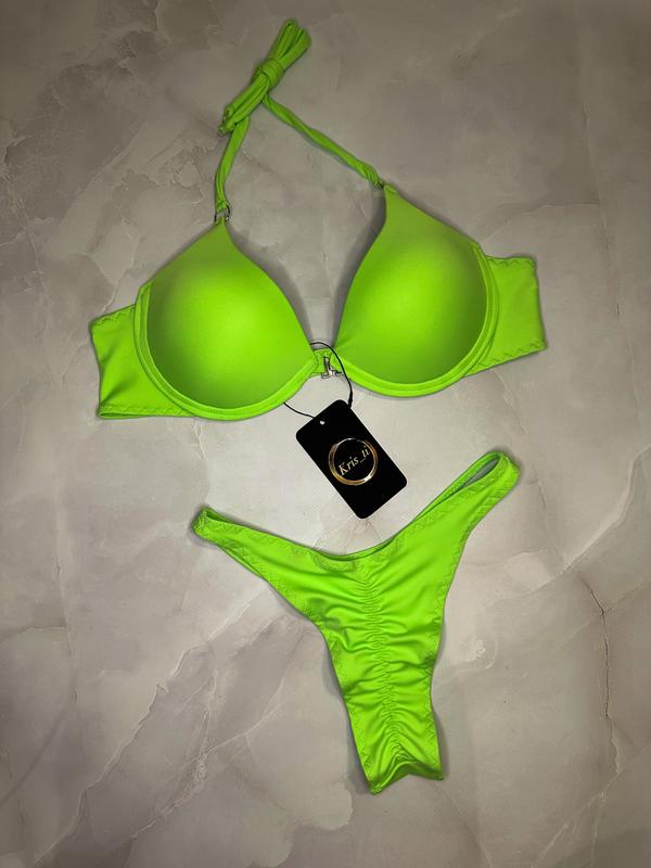 Більше фото в повідомлення❤️ Код КН – 0010 Розміри – XS, S, M, L Чашка – А-В, В, В-С, С Обхват під грудьми - 70 см, 75 см, 80 см, 85 см Кольори – жовтий, червоний, салатовий, рожевий, леопардовий, темно-зелений, чорний Чашка - пуш ап 2-D Застібка – замок Плавки – на зав'язках бразиліана, на регуляторах бразиліана, танго Тканина - мікродайвінг