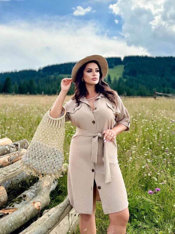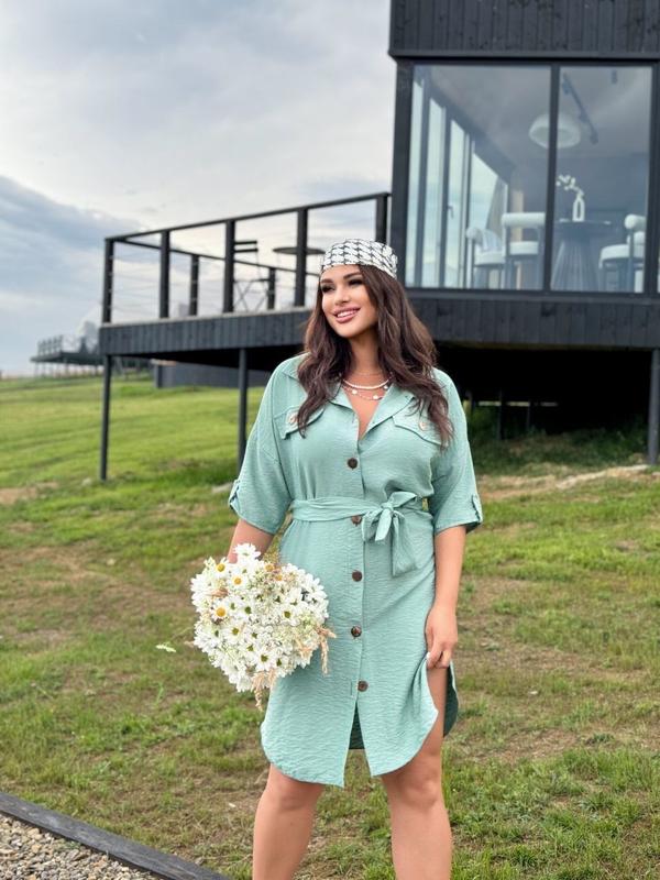 Сукня Модель № 7589-1 Розмір : 46-48; 50-52; 54-56; 58-60 Тканина : льон - жатка Довжина сукні : 105 см. Довжина рукава : 45 см. Стильна сукня -сорочка прямого покрою , на ґудзиках , комір . Пояс з основної тканини йде в комплекті . Тканина приємна на дотик , високої якості , не кашлатиться ‼️ВІДПРАВКА протягом 2-4 днів ‼️БЕЗПЕЧНОЮ ОПЛАТОЮ НЕ ВІДПРАВЛЯЄМО