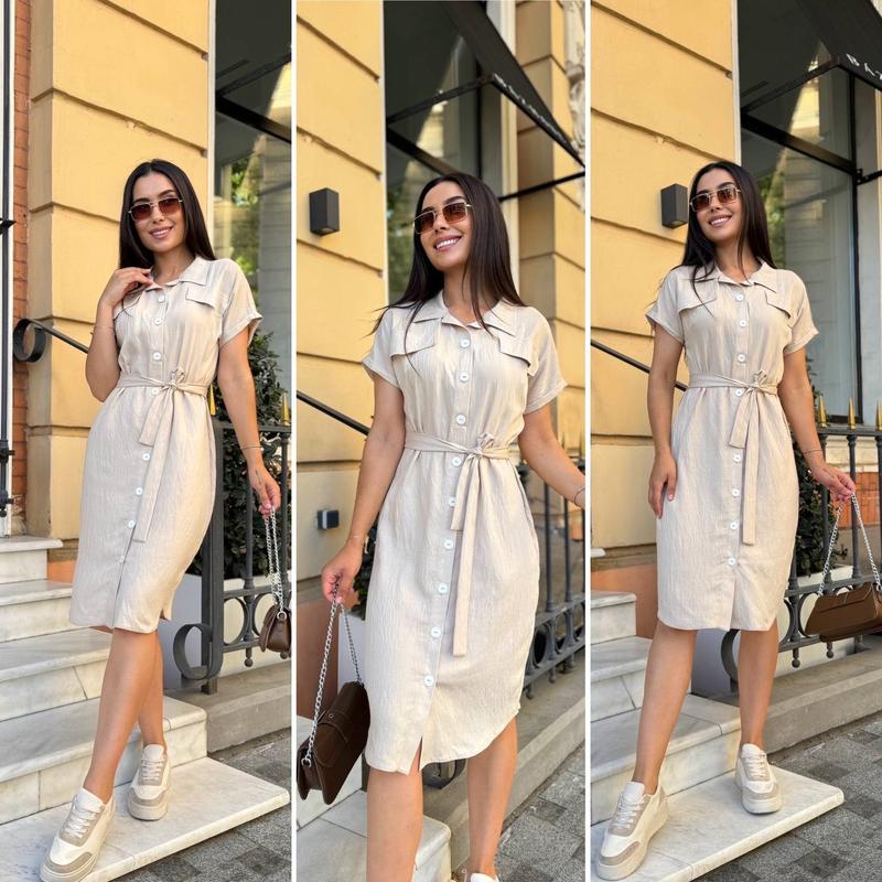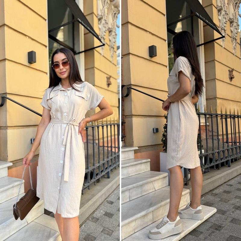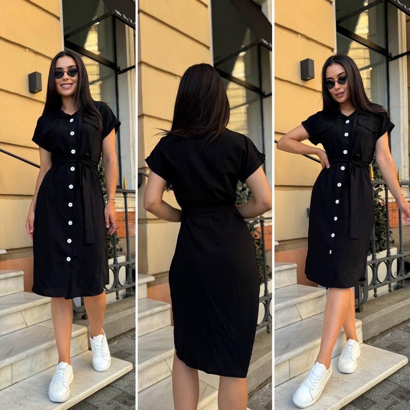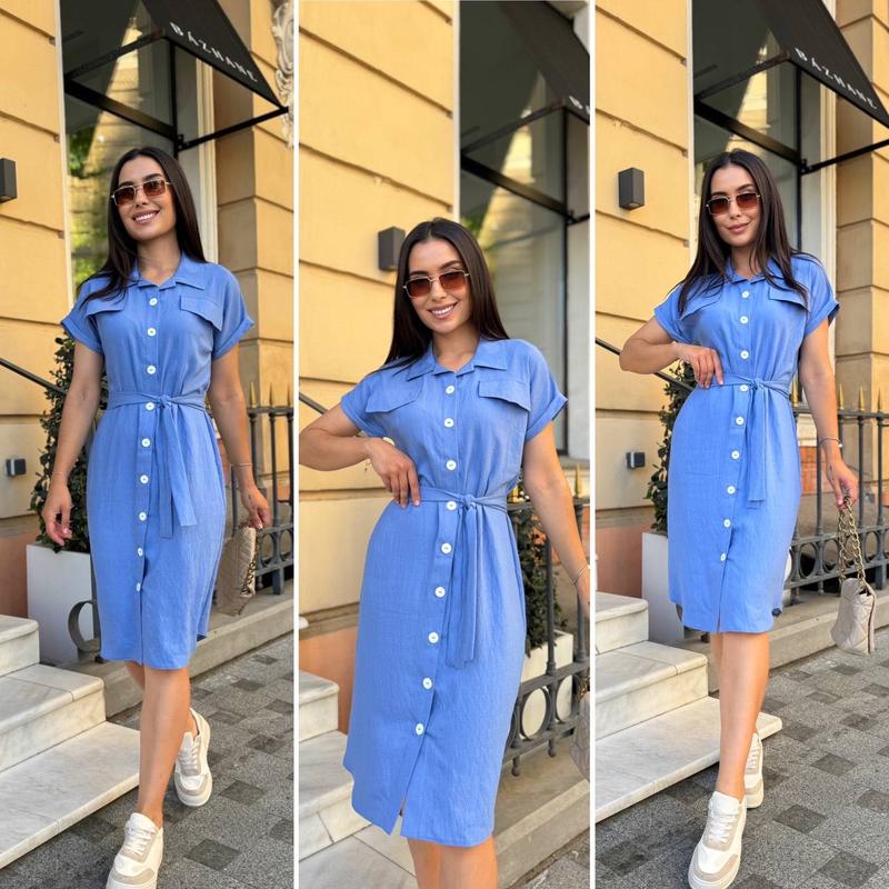 Сукня Розміри 42/44, 46/48, 50/52, 54/56 Тканина жатий льон Кольори: трава, беж, чорний, синій Пояс в комплекті. Ґудзики по всій довжині робочі. На грудях імітація кишені. Ціна 899 грн