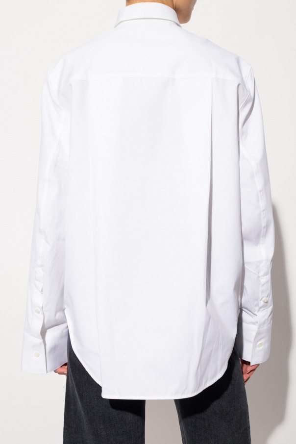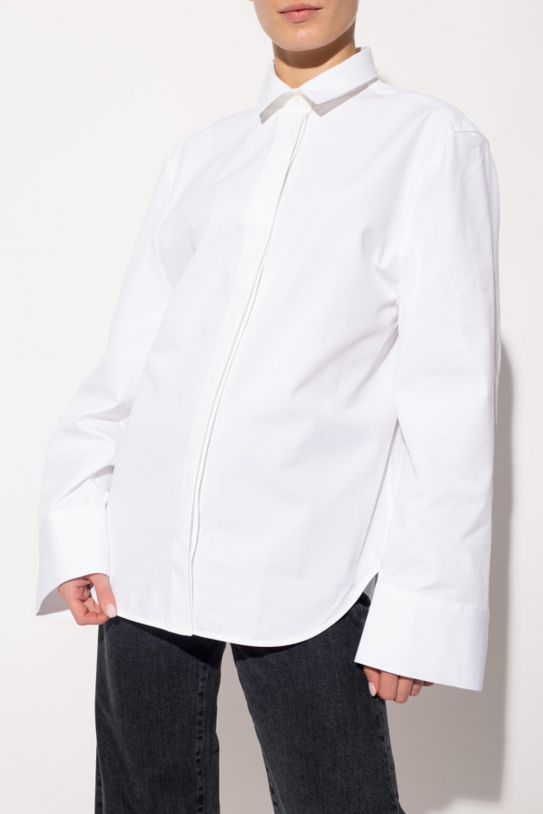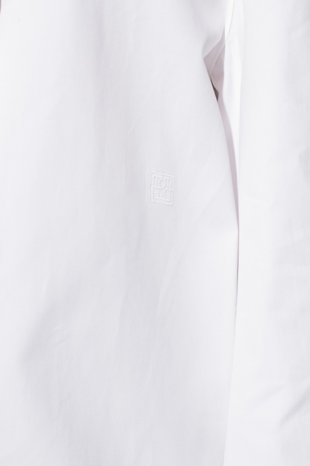 White shirt from Toteme. Crafted from organic cotton, this style features button fastenings with a concealed placket, graphic embroidery with the label\'s logo and long sleeves with button cuffs.