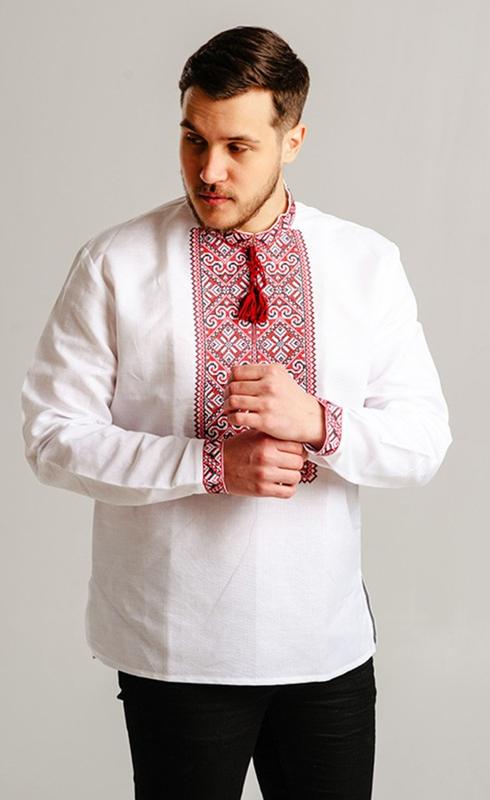 Мужская рубашка с традиционным красно-черным орнаментом. Размеры 42-58 От 54 р + 200 грн от 58+300 грн Практичная и удобная вышиванка из льна, которая имеет одну деталь – патик, благодаря которому рукав трансформируется в короткий. Отличный вариант праздничной одежды.