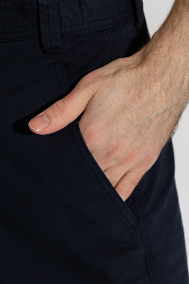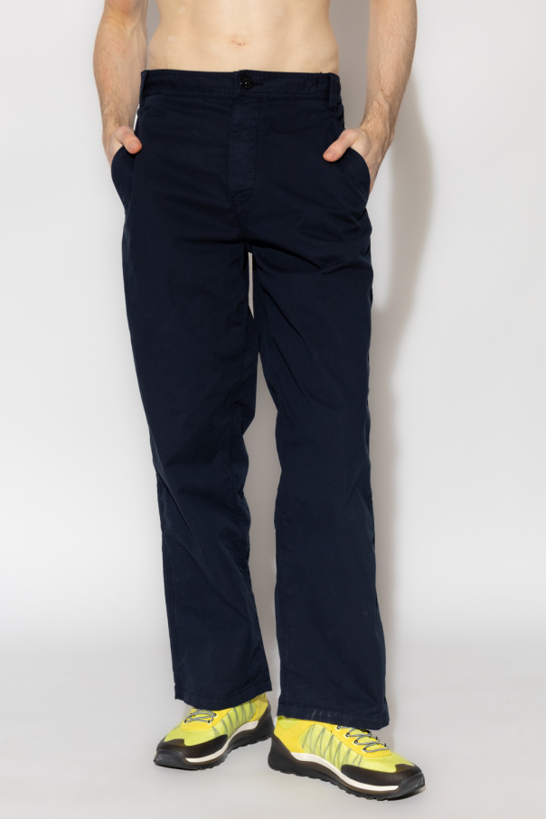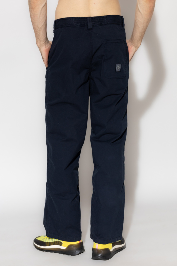 Navy trousers from Stone Island. Made of cotton, this pair features an elastic waistband, button fastenings, logo patch, four slip pockets and straight legs.