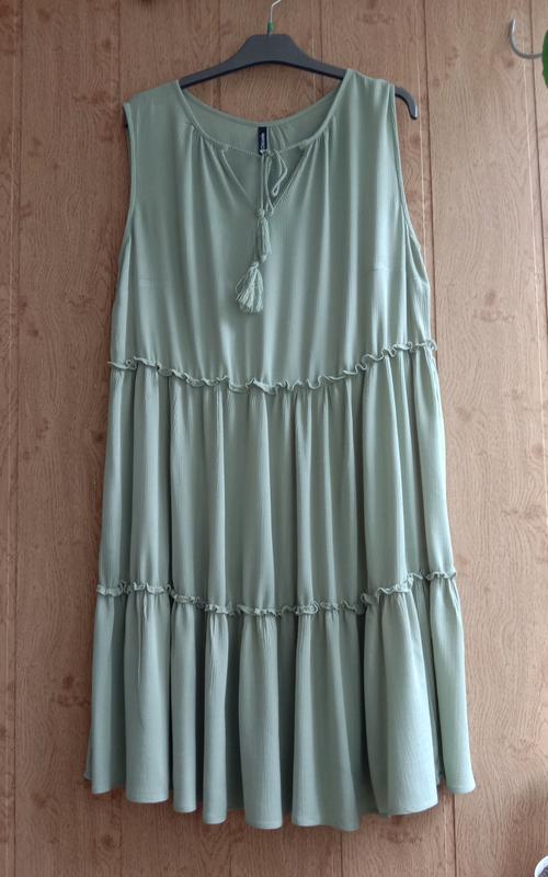 Швейцарський бренд Chicoree (Чікорі)- улюблений бренд не тільки в Швейцарії. Одяг цієї марки знайшов своїх прихильників в усьому світі, бо вирізняється якісним пошиттям, гарним складом тканин, вдалими фасонами. Сарафан в красивому ніжно- оливковому кольорі- це поєднання стилю та якості! Вільна нижня частина красиво виглядає на фігурі, а легесенька, приємна на дотик, тканина дуже комфортна в літню спеку. Розмір XL, ПО\0Г- 59 см, довжина 94 см. Стан ідеальний.