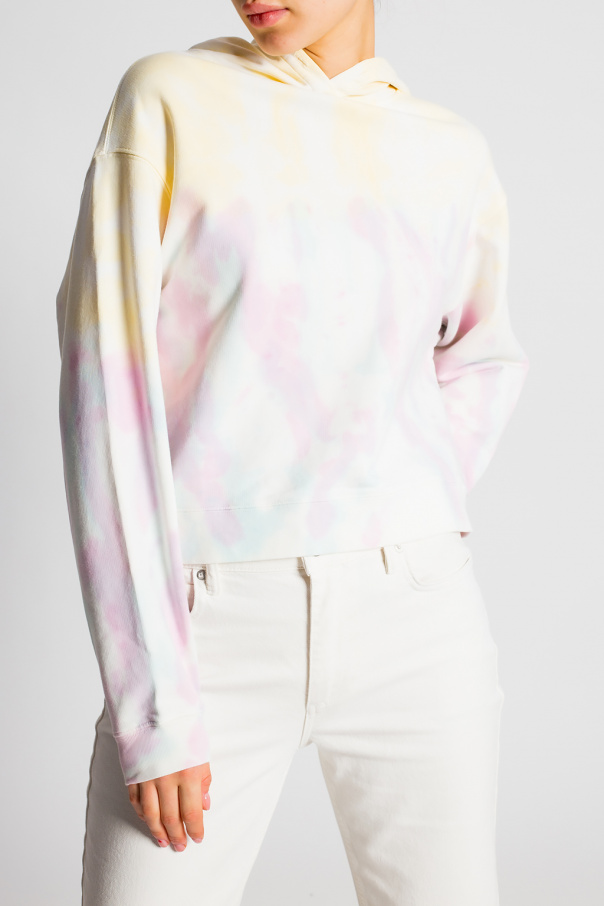 Multicolored ‘Pippa’ hoodie from AllSaints. This garment is decorated with a tie-dye effect and ribbed trims at the hem and cuffs.