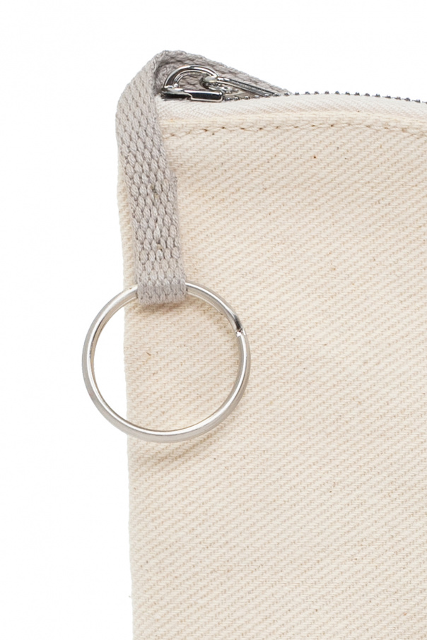 Cream phone holder from Rick Owens DRKSHDW. Made of cotton, this design features a zip fastening, a beige strap with a lobster clasp fastening, silver-tone metal hardware and one internal compartment.