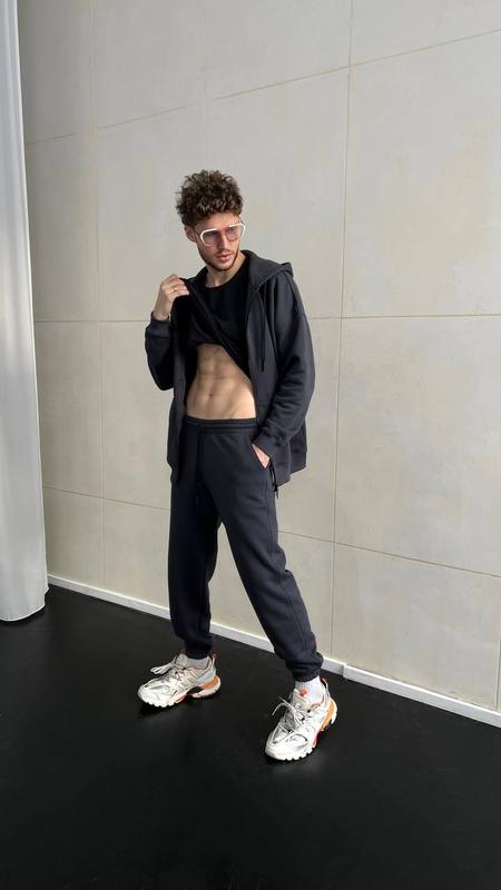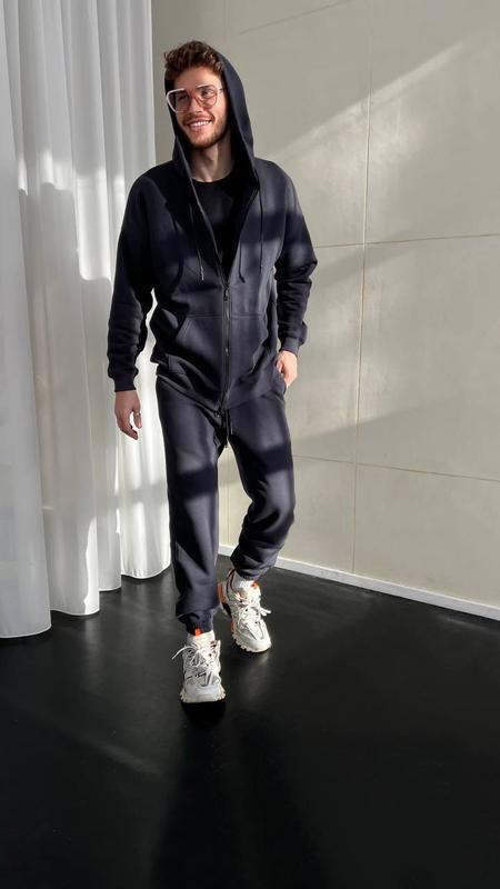Мужской спортивный костюм теплый и практичный костюм умеренного оверсайз фасона. \0Худи на молнии с глубоким двойным капюшоном на шнуровке, который держит форму. Джоггеры на эластичном пояске с заужены книзу. Двойная молния лучшего качества, которая не портится от стирки - YKK! Палитра: графит, черный Ткань: трехнитка на флисе пенье Состав: 95% хлопок, 5% полиэстер Размеры: s, m-l Отправка после полной оплаты на карту!