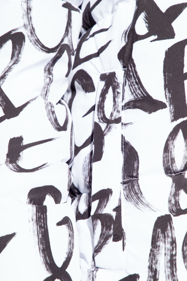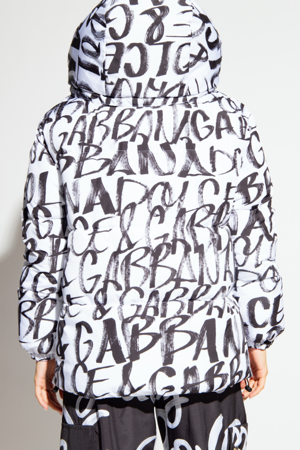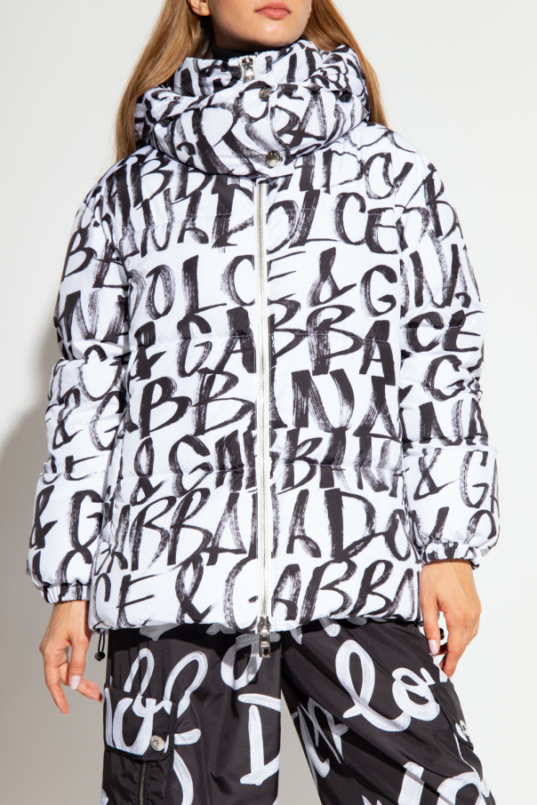 White and black jacket from Dolce & Gabbana. Fastened with a two-way zip, this garment features a detachable drawstring hood, monogram, two snap-fastened front pockets, drawstring hem and long sleeves with elasticated cuffs.