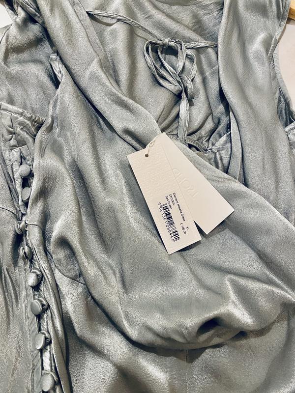 Сукня sleep відомого англійського бренду Ghost Сукня мʼятного кольору з важкої якісної віскози. Крій по косій гарно лягає по фігурі, при потребі добре тягнеться в ширину, тому підійде на декілька розмірів. Розмір вказано XL - маломірить, підійде на L М Довжина 150 см ПОГ 50-52 см ПОТ 39-42 см Сукня нова, з бірками Ціна на бірці - 195£