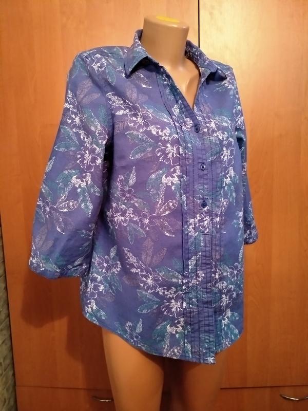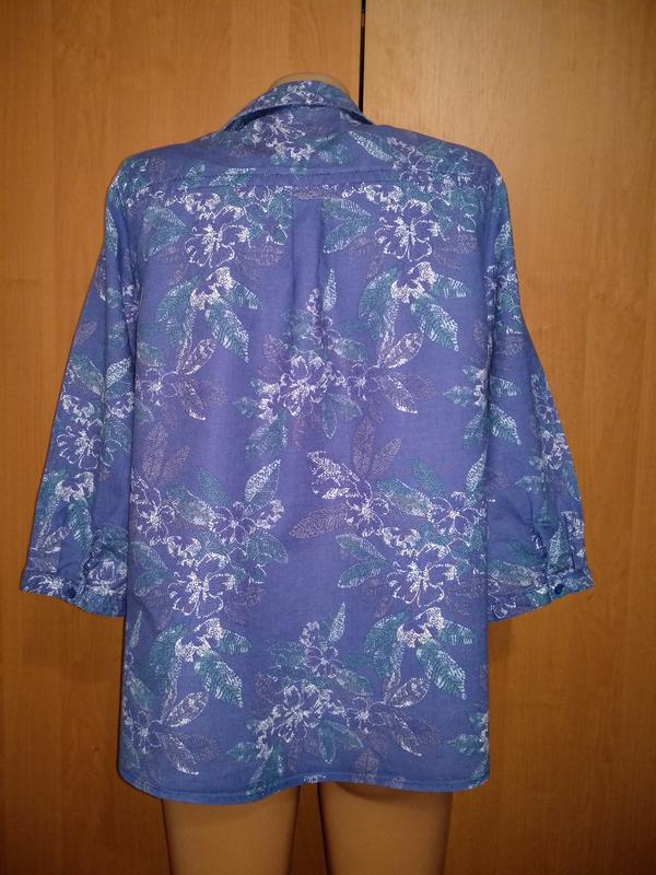 Красивенная рубашка фирмы Bm Casual приятного синего цвета с ненавязчивым цветочным принтом. Цвет равномерный, не выгоревший. Состав - 53% лён и 47% хлопок. Смотрится бесподобно! Состояние идеальное - без изъянов. Размер указан 12, наш ориентировочно 48-50. Смотрите внимательно замеры: Ширина плеч = 37 см ПОГ = 53 см ПОТ = 52 см ПО внизу = 57 см Рукав 3/4. Длина рукава от плеча / от подмышки = 44 см / 29 см Длина рубашки по спинке = 65 см. Смотрите другие мои объявления - в наличии много превосходных вещей! Есть нижнее белье, обувь, брендовые льняные вещи (платья, блузки, юбки, штаны, пиджаки), много фирменных коллекционных игрушек (абсолютно реалистичные собаки разных пород и кошки). Подписывайтесь на мой магазин, чтобы быть в курсе обнов). Возврата и обмена нет, делайте покупки обдуманно.