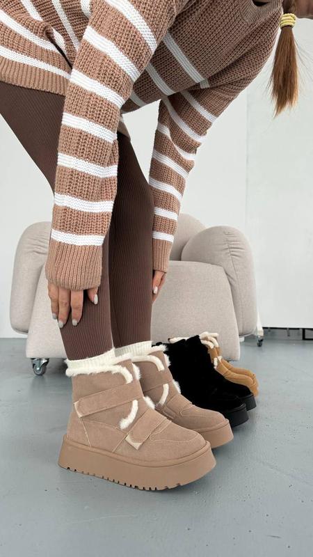 Угги на липучках НАТУРАЛЬНАЯ ЗАМША внутри: густой мех фиксируются липучками высота от пятки: 11 см подошва: 3,5 см/4,5 см 36= 23 см 37= 23,5 см 38= 24,5 см 39= 25 см 40= 25,5 см 41= 26 см