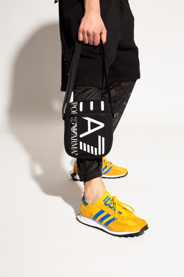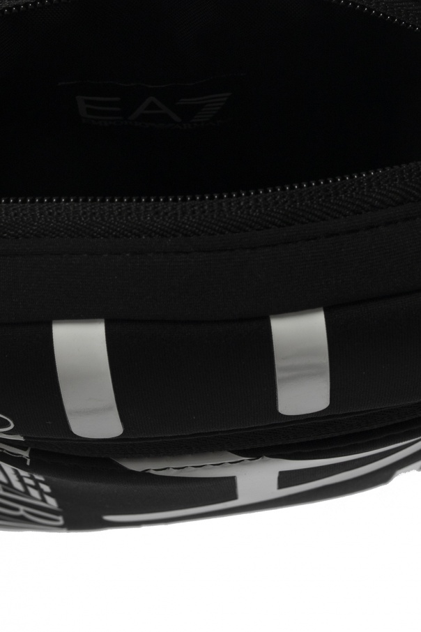 Black shoulder bag from EA7 Emporio Armani. Printed with the brand\'s logo in white, this design features a zip fastening, an external zip pocket on the front, an adjustable shoulder strap and one internal compartment.