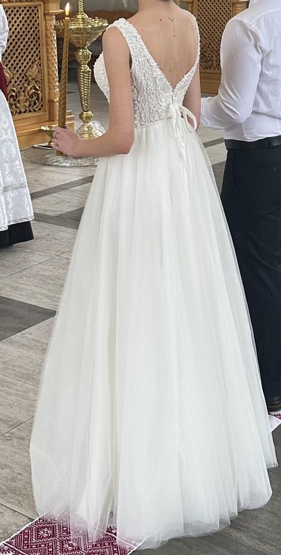 Сукня в чудовому стані! Була вдягнута ЛИШЕ в церкву. Буквально на годину. Розмір хс-с. Мій зріст 167 + середній каблук. Купувала за 520$