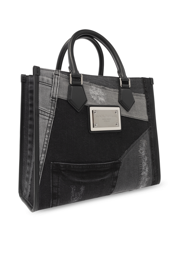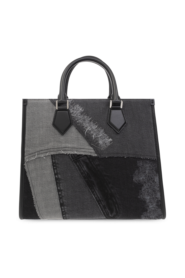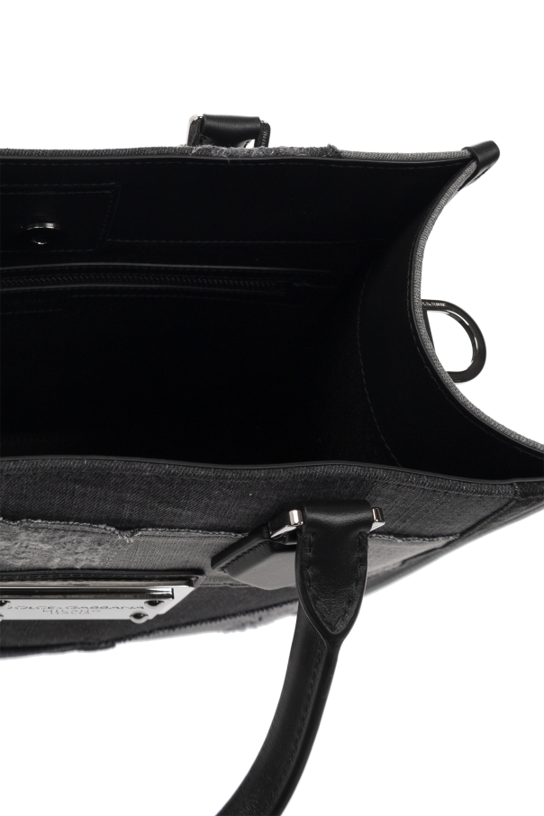 Grey denim shopper bag from Dolce & Gabbana. Made of cotton, this design features a vintage effect, two half-round handles, detachable shoulder strap, silver-tone metal hardware and one internal compartment with two slip pockets and one zip pocket.