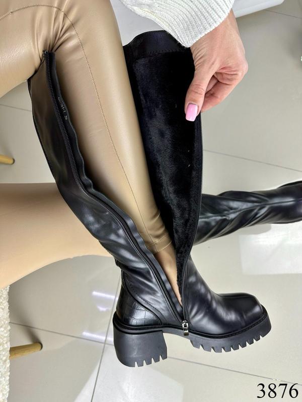 НОВИНКА Код: 3876 Лучший вариант на зимний сезон - стильные сапоги в черном цвете. Вы почувствуете себя женственно и уверенно в них, гарантируем. Производство: Турция. Кабоук: 7,5 см. Полномер. Эко кожа. Цвет: Черный. 38 - 24,5 см 39 - 25 см 40 - 25,5 см