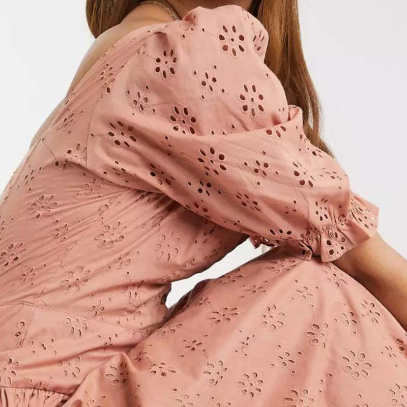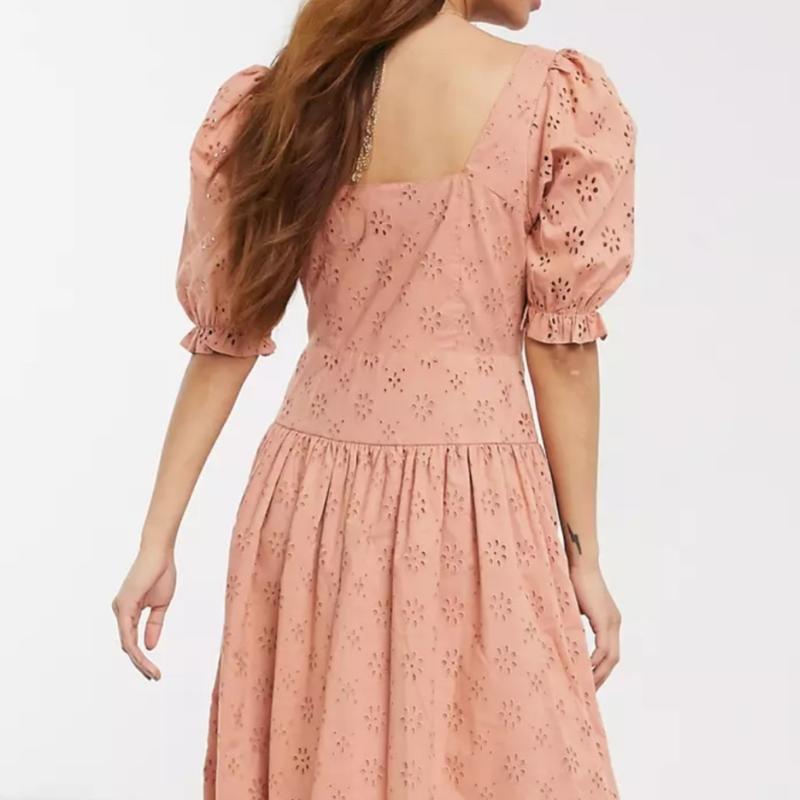 Платье Asos прошва 100% хлопок, на подкладке, шиккарное декольте,рукав фонарик,идальное на лето, на широкие бежевое (присутствует запас)