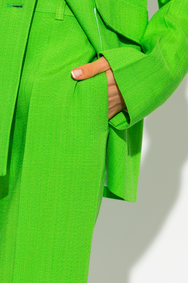 Green pleat-front trousers from Victoria Beckham. Falling with straight legs, this pair features a zip fly with a button and hooks, two front slip pockets and two back zip pockets.