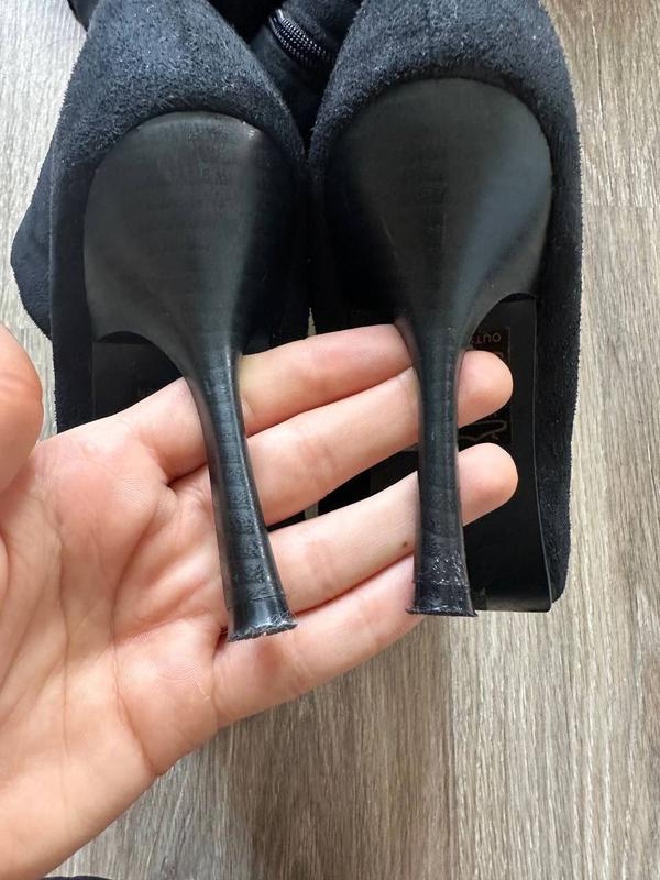 В доволі гарному стані, розмір 5 (наш 38,5-39). Раджу на ногу 24,5-25 см. Зручні, бо шпилька знаходиться прям під пʼятою. Тканина - замінник замши. Ціна - 400 грн, можливий торг.