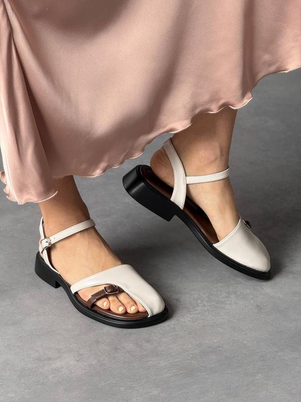 Код 11429 Сучасні босоніжки Колір: БЕЖЕВИЙ Матеріал: екошкіра Устілка: шкірпідклад Підошва позаду: 3 см Фіксуються ремінцем
