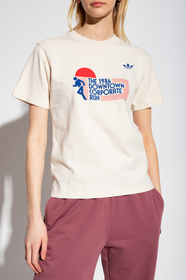 Cream crewneck T-shirt from ADIDAS Originals, the ‘Blue Version’ collection. Crafted from cotton, this garment has short sleeves and a motif made in water print technology.