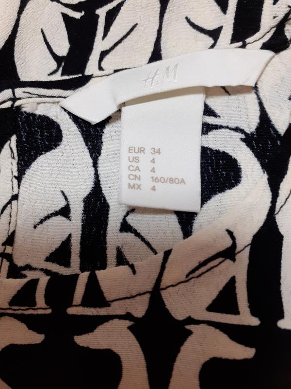 Красивая блуза с оригинальным принтом в хорошем состоянии Замеры: длина-56, пог-48, рукав приспущен, длина волана-6