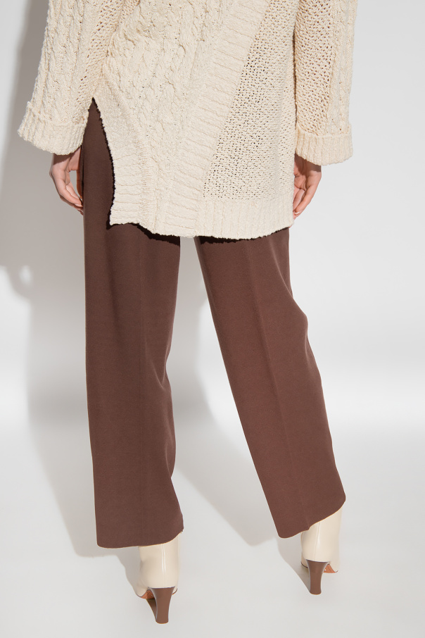 Brown ‘Madeleine’ pleat-front trousers from Aeron. Crafted from material with the FSC certificate, this pair features a relaxed fit, cropped legs and a zip fly with a gold-tone logo button.