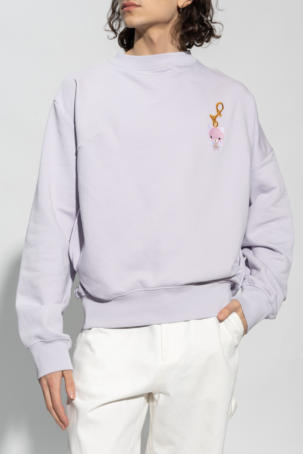 Light purple crewneck sweatshirt from Vivienne Westwood. Crafted from organic cotton, this style showcases pink, brown and white graphic embroidery with the brand\'s logo on the front, two slip pockets and ribbed trims on the collar, bottom hem and long sleeves.