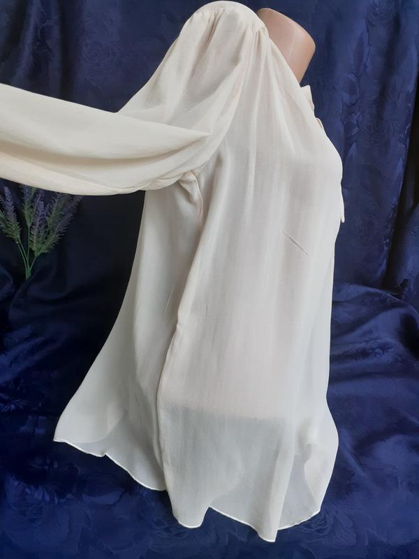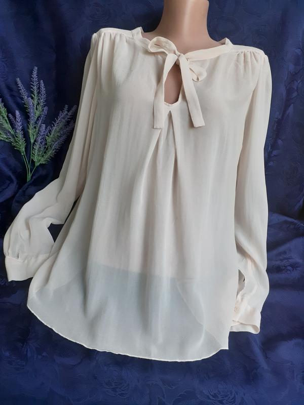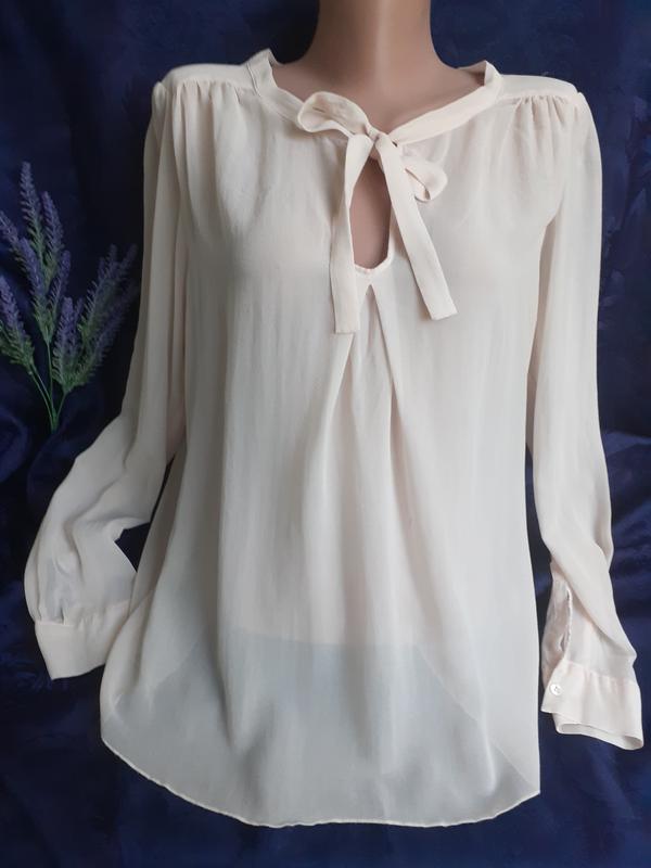 Женственная, очень качественная, шифоновая блуза с воротником аскот для создания романтичных образов! Это Vinilia CLASSIC*S, итальянский бренд, уже много лет радующих своих счастливых клиентов! Необычное сочетание мягкости ткани и простоты кроя со строгим воротником-галстуком и присобраной линией плеча на изящном манжете. Строгий аскот можно носить в форме галстука на официальных приёмах или завязать кокетливым бантом, приоткрыв линию декольте. Материал - натуральный шифон - тончайшая полупрозрачная ткань, которую получают путем сильного крепового переплетения шелковых нитей, - мягкий, приятен тактильно, обладает хорошим теплообменом, "дышит" и не доставляет дискомфорта. Бант и глубокое декольте создают женственный сексуальный образ, визуально вытягивая силуэт и скрывая недостатки фигуры! Цвет- пряная ваниль (оттенок персика). Модель всесезонна. Размер 14 или L, или 48-50 украинский, но поскольку блуза воздушная, можно и на М. 📐Замеры: длина по спинке - 66 см, от плечевого шва до плечевого - 41 см, ПОГ - 60 см, от подмышки до подмышки - 58 см, ширина в районе талии - 60 см, длина рукава с манжетом - 66 см, обьем в районе предплечья - 38 см. Состояние отличное, без дефектов.