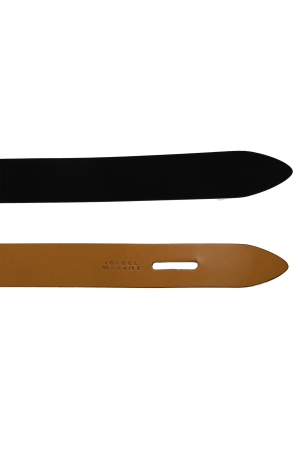Light brown and black ‘Lecce’ reversible belt from Isabel Marant. Made of leather, this item features an embossed logo.