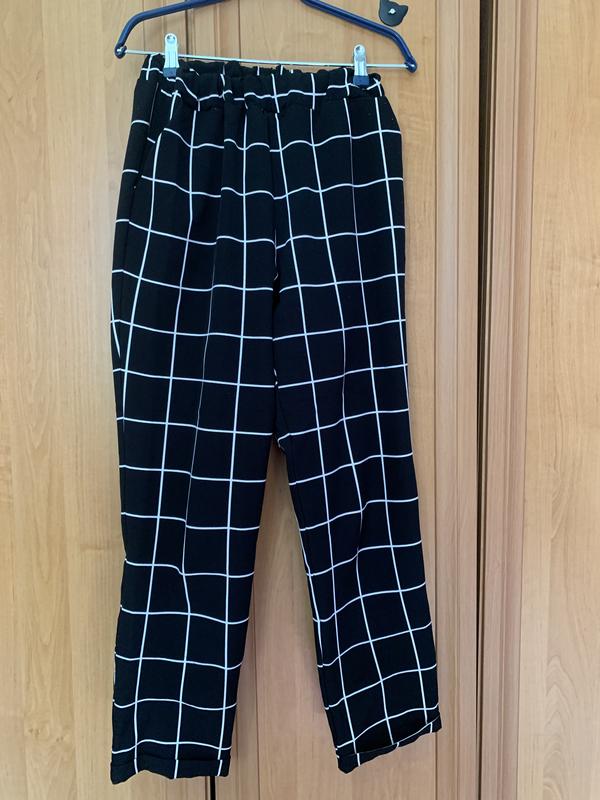 Нужно немного почистить от катышек Длина 90 см Ширина штанини 27 см По талии 34 см (на резинке, тянется до 41 см) На бедрах 54 см