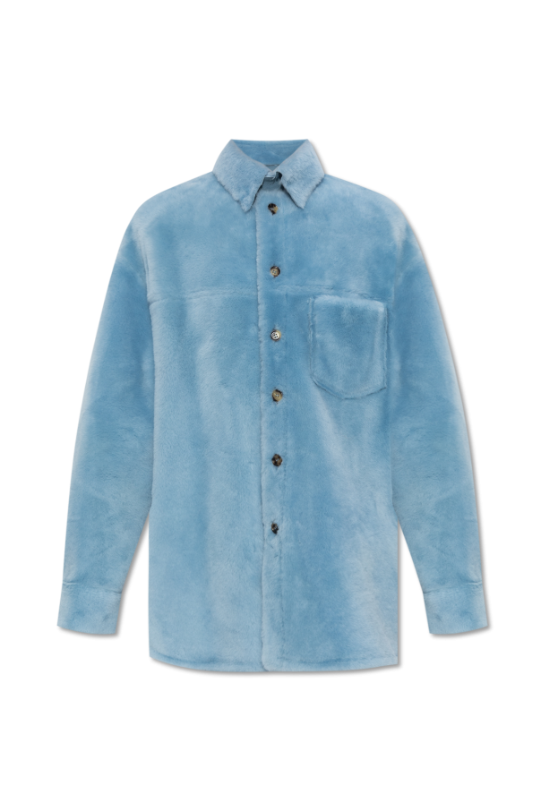 Blue jacket with a collar from Marni. Fastened with buttons, this reversible garment features a front pocket, one side made of fur, the other – of lamb leather.