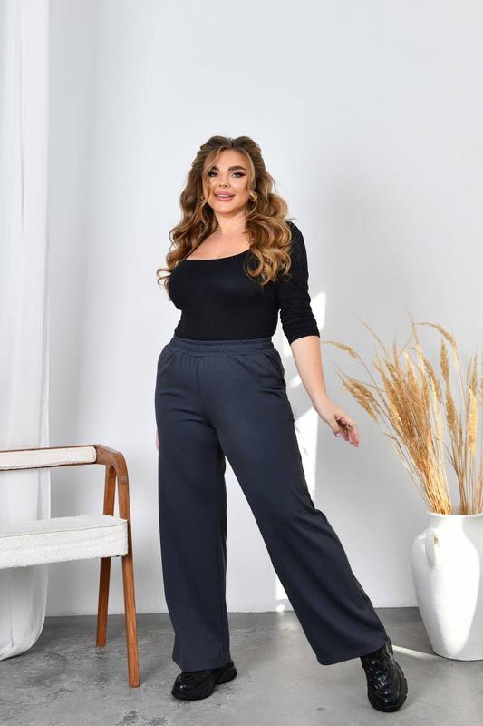 Брюки Код 3688 📍производитель Одесса Ткань: трикотаж-рубчик с начесом (растяжимость средняя, не скатывается). Цвета: черный, шоколад, серый. Размеры: 48-50,52-54,56-58,60-62,64-66. Длина брюк по внешнему шву: 102, 103, 105, 107, 108 см. Длина брюк по внутреннему шву: 76, 76, 75, 75, 74 см. Замеры готового изделия: 48-50 ОТ 73/102 ОС 102 52-54 ОТ 80/110 ОС 110 56-58 ОТ 87/118 ОС 118 60-62 ОТ 94/126 ОС 126 64-66 ОТ 101/134 ОС 134 Невероятно стильные и модные брюки прямого, широкого силуэта из качественного трикотажа-рубчик с начесом ( растяжимость средняя, не кашлатится). Брюки по талии собраны на резинку. В боковых швах обработаны карманы. 🛒ОТПРАВКА в течение 3-7 рабочих дней!️