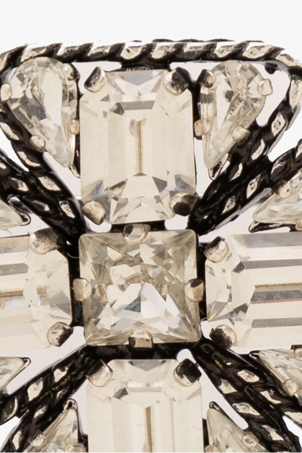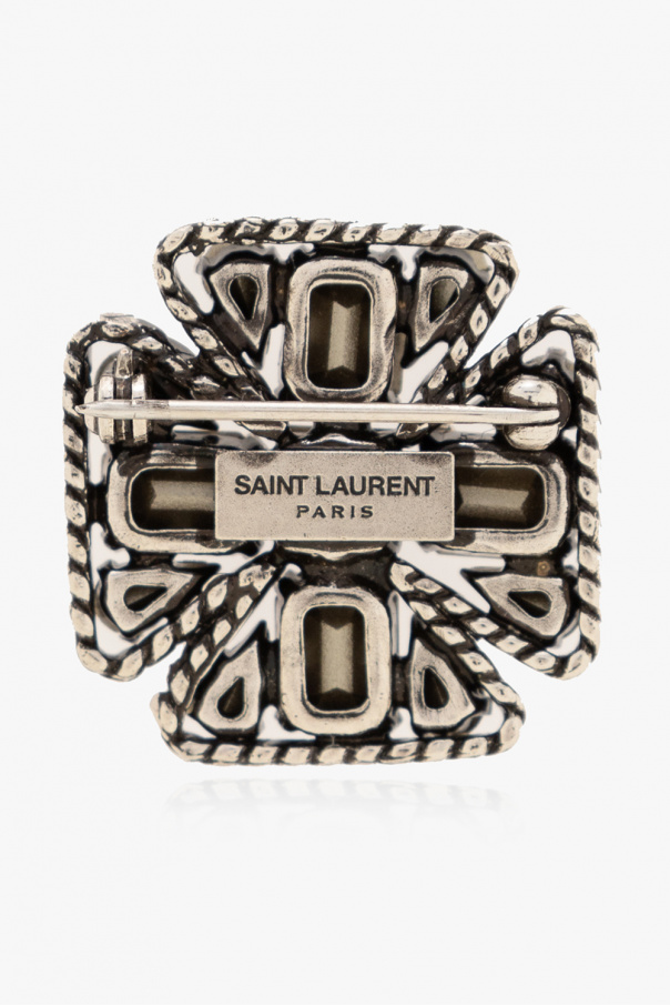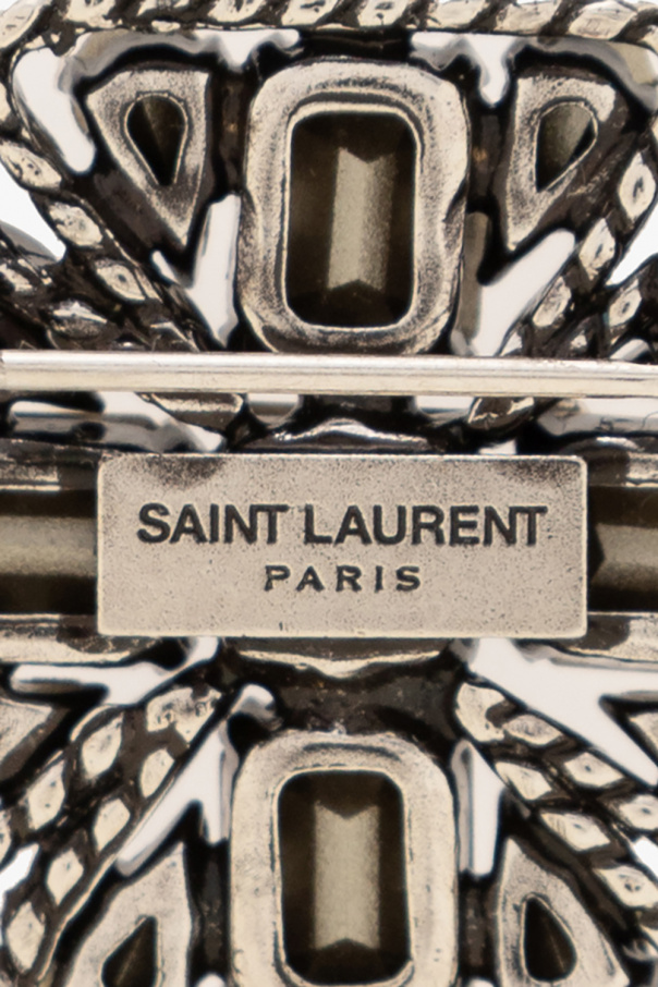 Silver-tone brooch embellished with crystals from Saint Laurent. Made of brass.