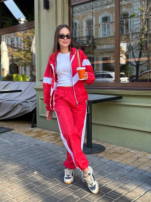 Костюм двокольоровий з плащівки Реальні фото 🔪Кольори: - червоний - чорний - беж ➡️Мод. 1460 ➡️Розмір: 42-46 (oversize) ➡️Тканина: плащівка 🔥Ми використовуємо високоякісну фурнітуру✌️ ✂️Заміри: ⚡️Довжина худі 63см, штанів 105см.