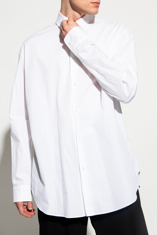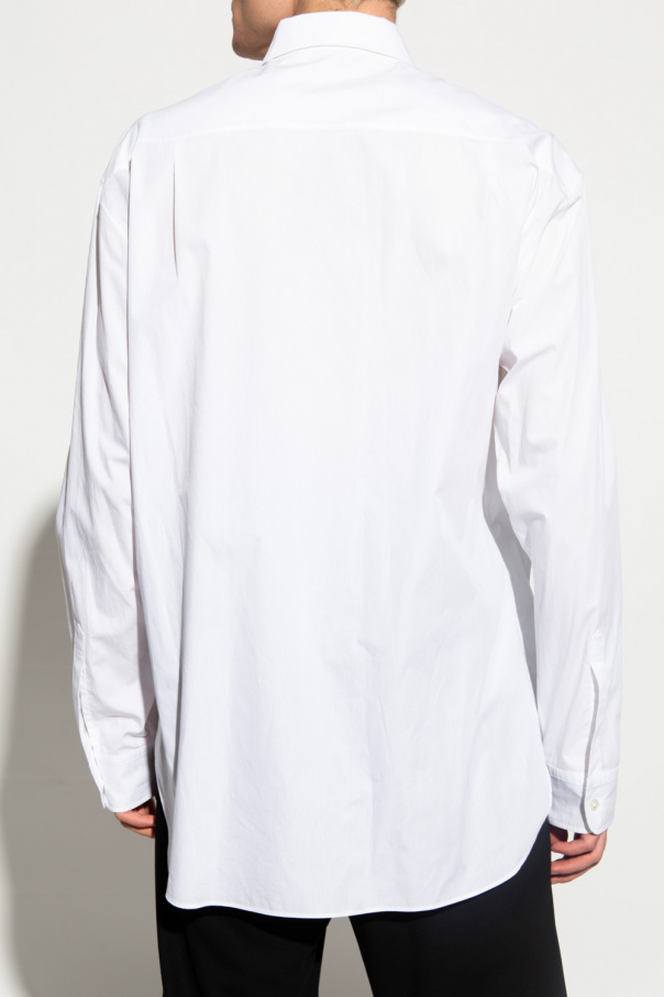 White ‘Klaas’ shirt from Ann Demeulemeester. Crafted from cotton, this style features button fastenings and long, rolled-up sleeves with button cuffs.