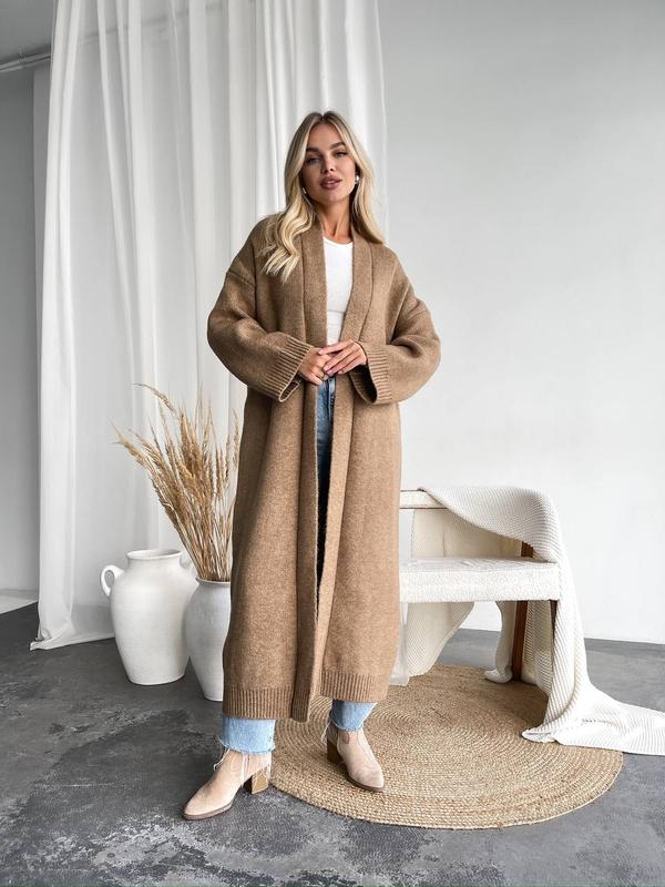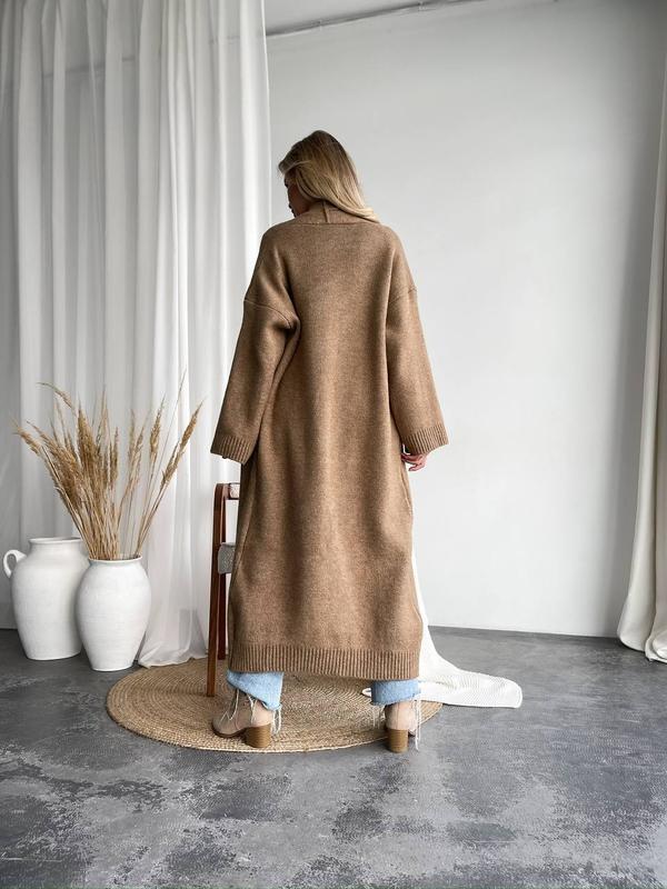 Подовжений кардиган, виконаний з м'якої пухнастої пряжі. Кардиган ідеально підійде на прохолодну погоду. • Розмір універсальний • Довжина 132 см • ПОГ 58 см • Рукав від шиї 75 см • Склад: 78% акрил, 15% полиестр, 7% еліт 2068 q