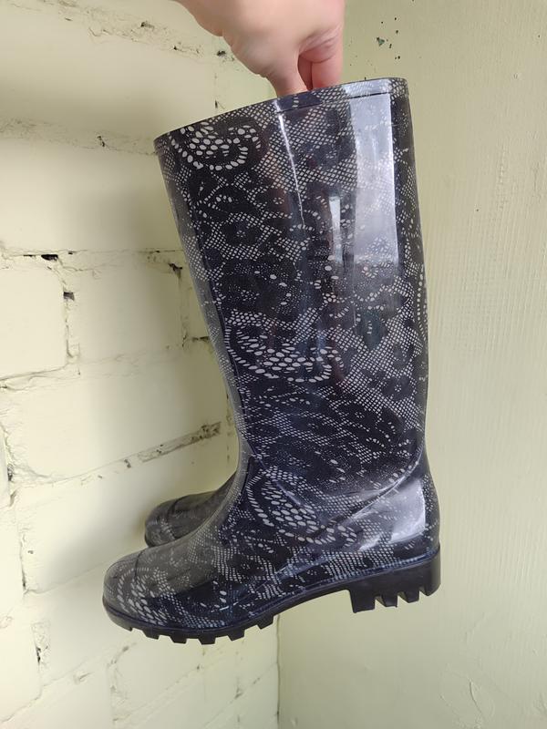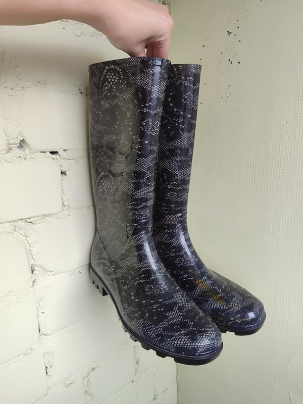 Черные резиновые сапоги Retro 227 базовые актуальные стильные элегантные Размер - 8, это 40,5-41 Ориентируйтесь, пожалуйста, на замеры 👇 Длина внутри по стельке - 27,5 см Ширина ноги по стельке - 8,5 см Удобный каблук, устойчивый, невысокий(2 см) Материал - резина / силикон Цвет - черный глянцевый Рисунок - кружево. Подошва: прочная, износостойкая Маленький нюанс на 2-х последних фото - сбоку стопы внутренней стороны немного загрязнения желтого цвета. В носке не заметно, в стоимости учтены. Стан - идеальный/новый 👍 Отправляю Новой и Укр-почтой Оплата на карту Безопасная оплата - Новой почтой Еще много красивых, интересных вещей в наличии вы найдете на моей странице - подписи, чтобы не пропустить новинки и распродажи🤗. Вдалих покупок 🌹