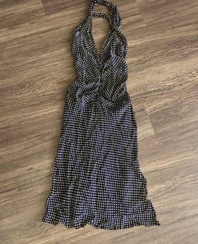 Стильное актуальное платье (Италия). Состав натуральный (на фото бирки), длина 108 см, на грудь 85-89 см, талию 58-65 см, бёдра 84-92 см. Есть подкладка. Ткань легкая по свойствам как шифон