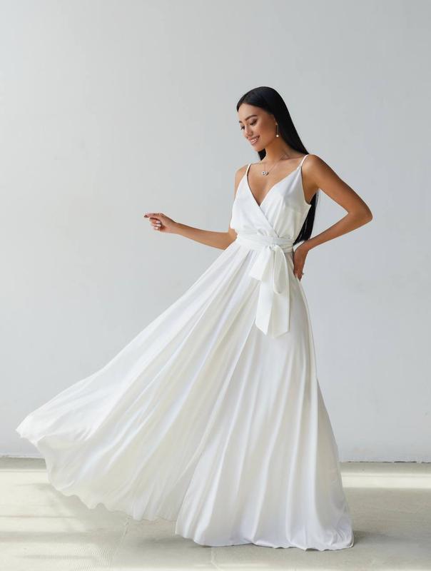 Т\0канина: Шовк "Армані" (Італія) Склад: 60% поліестер, 38% віскоза, 2% еластан Колір: бежевий, білий, чорний, темно-синій, смарагдовий Розмір: XS, S, M, L, XL, XXL Зріст: ОГ: 86 см, ОТ: 66 см, ОГ: 93 см. На фото на моделі розмір S Комплектація: сукня, пояс. 🔥Фактичні виміри виробу: Об'єм по грудях: XS- 81/85; S-85/89; M-89/93; L-93/97; XL-97/101; XXL-101/104; Об'єм по талії (по талії резинка): XS- 58/73; S-62/77; M-66/81; L-70/85; XL-74/89; XXL-78/93; Довжина спідниці 115см *бретелі регулюються
