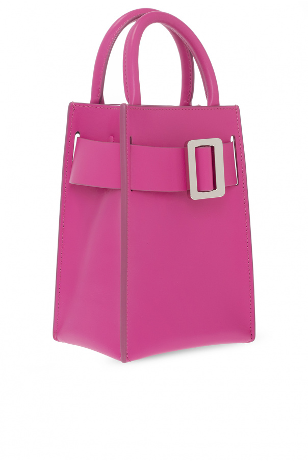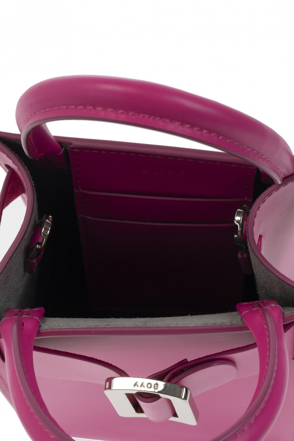 Pink ‘Bobby Tourist’ shoulder bag from Boyy. Made of calf leather, this design features a decorative buckle on the front, two half-round handles, an adjustable shoulder strap, silver-tone metal hardware and a dark grey suede-clad interior with one compartment and two card slots.