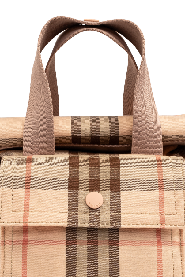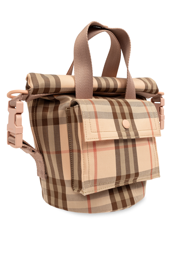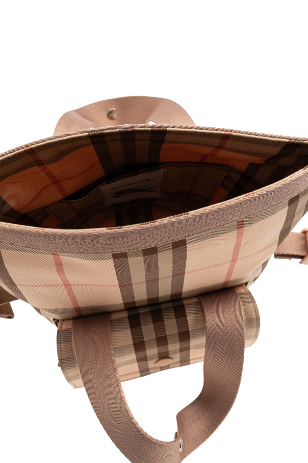 Introducing the Check Pattern Bag from the exclusive Burberry Kids collection, a masterpiece of elegance and functionality. The bag features a dominant pink hue accented with shades of brown and beige, showcasing the iconic check pattern synonymous with this renowned brand. Crafted from premium cotton, both the outer and inner layers promise durability without compromising on style. The bag is adorned with solid handles for comfortable carrying and a practical front pocket secured with a snap closure. Inside, the bag offers ample space, complemented by a modern roll-top closure, enhancing both its contemporary appeal and practicality. The addition of a pink adjustable strap fastened with rose gold-toned metal clasps adds a touch of sophistication to this stylish accessory. Why Choose This Product? Exclusive design by Burberry Kids Timeless and iconic check pattern Spacious interior with innovative roll-top closure Adjustable strap for versatile use Front and internal pockets for added convenience