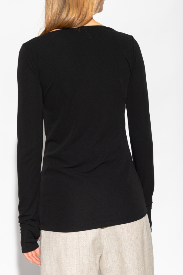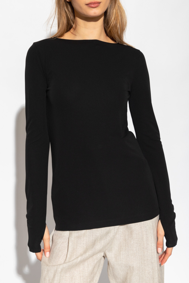 Black top with a round neck, long sleeves and thumb holes from Toteme.