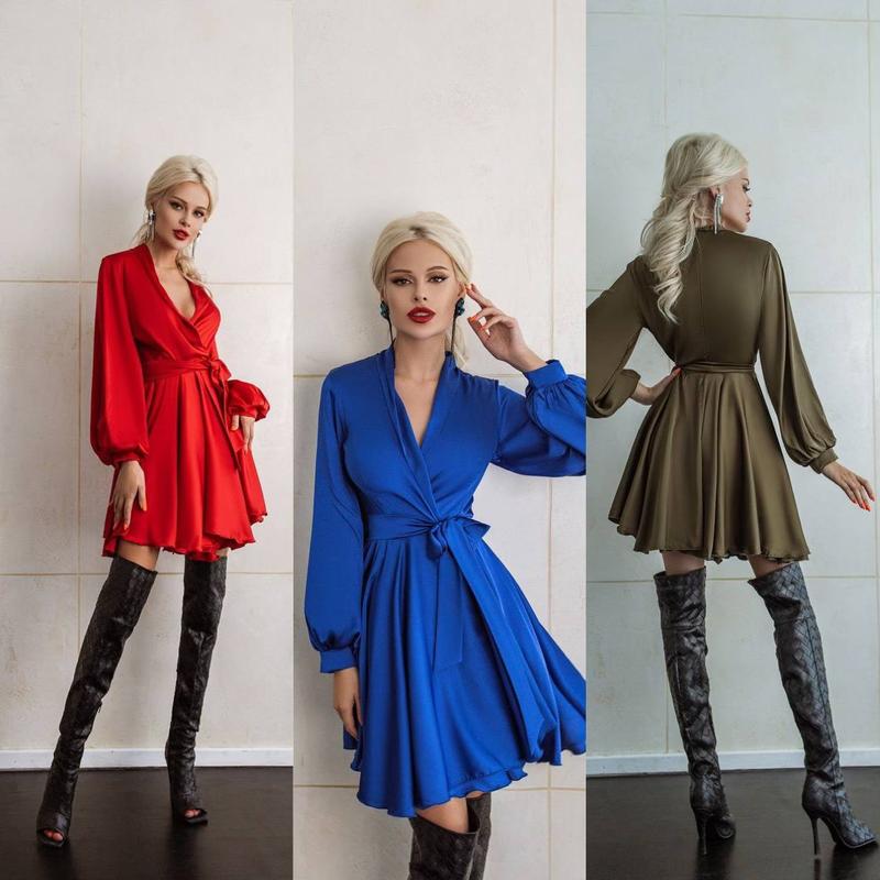 ❗™️ Одежда направления от ВЫРОБНИКА ✅ БЕЗ ПЕРЕПЛАТ 👌 Все Трендовые НОВИНКИ 🤗 Обновление ежедневно🔥 📌Подписывайтесь Модель : 325 Ткань : шелк Армани Размер : 42-44,46-48 Цвет: красный,электрик,хаки Замеры 42-44/46-48 ОГ - 84-92/92-100 см ОТ - 64-72/72-80 см (регулируется внутренними завязками) Длина платья по спинке- 85/85 см Длина рукава - 60/60 см Параметры модели на фото рост 170 см ОГ - 87 см ОТ - 63 см ОС - 88. см