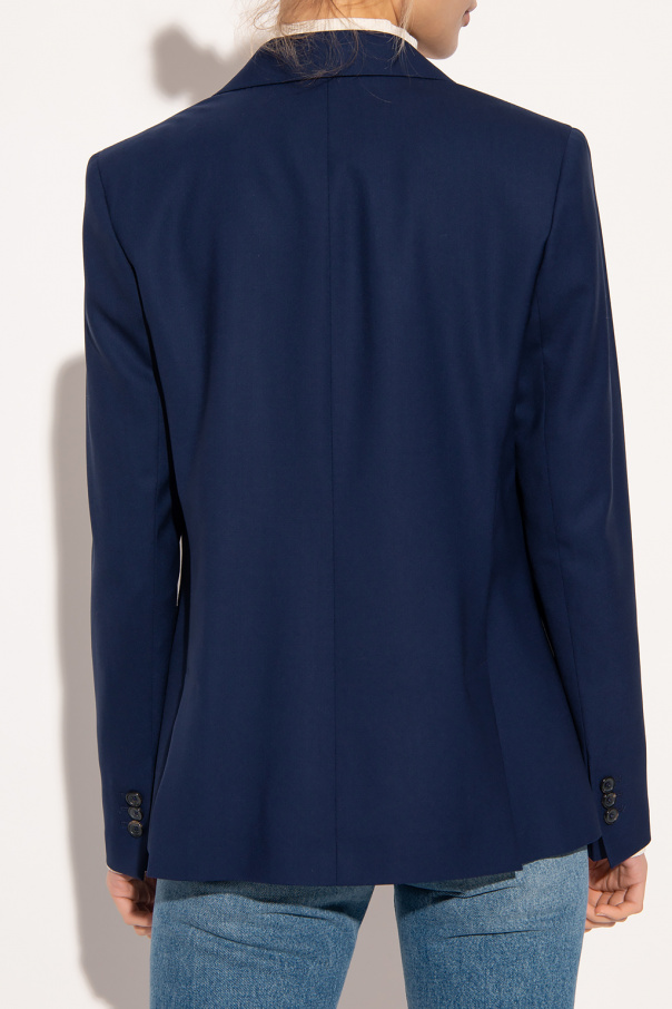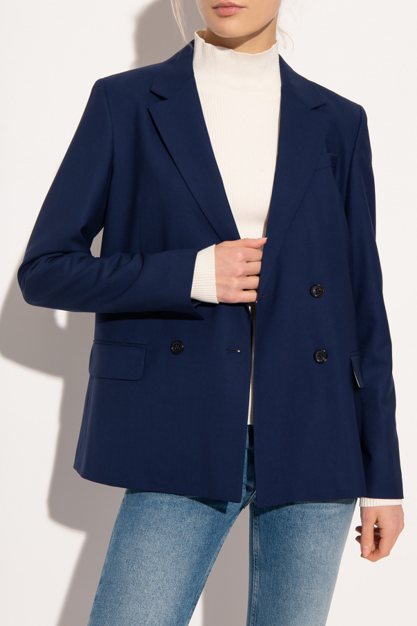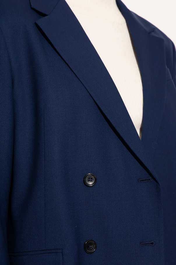 Navy double-breasted blazer from PS Paul Smith. Made of wool, this long sleeve design features button fastenings, two flap pockets, one slip pocket and a double rear vent.