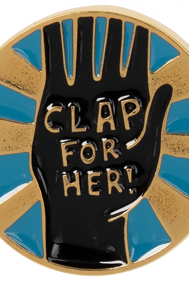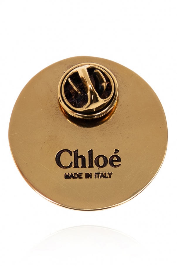 Gold-tone brooch from Chloé. Crafted from brass, this piece features a printed pattern in blue and black.